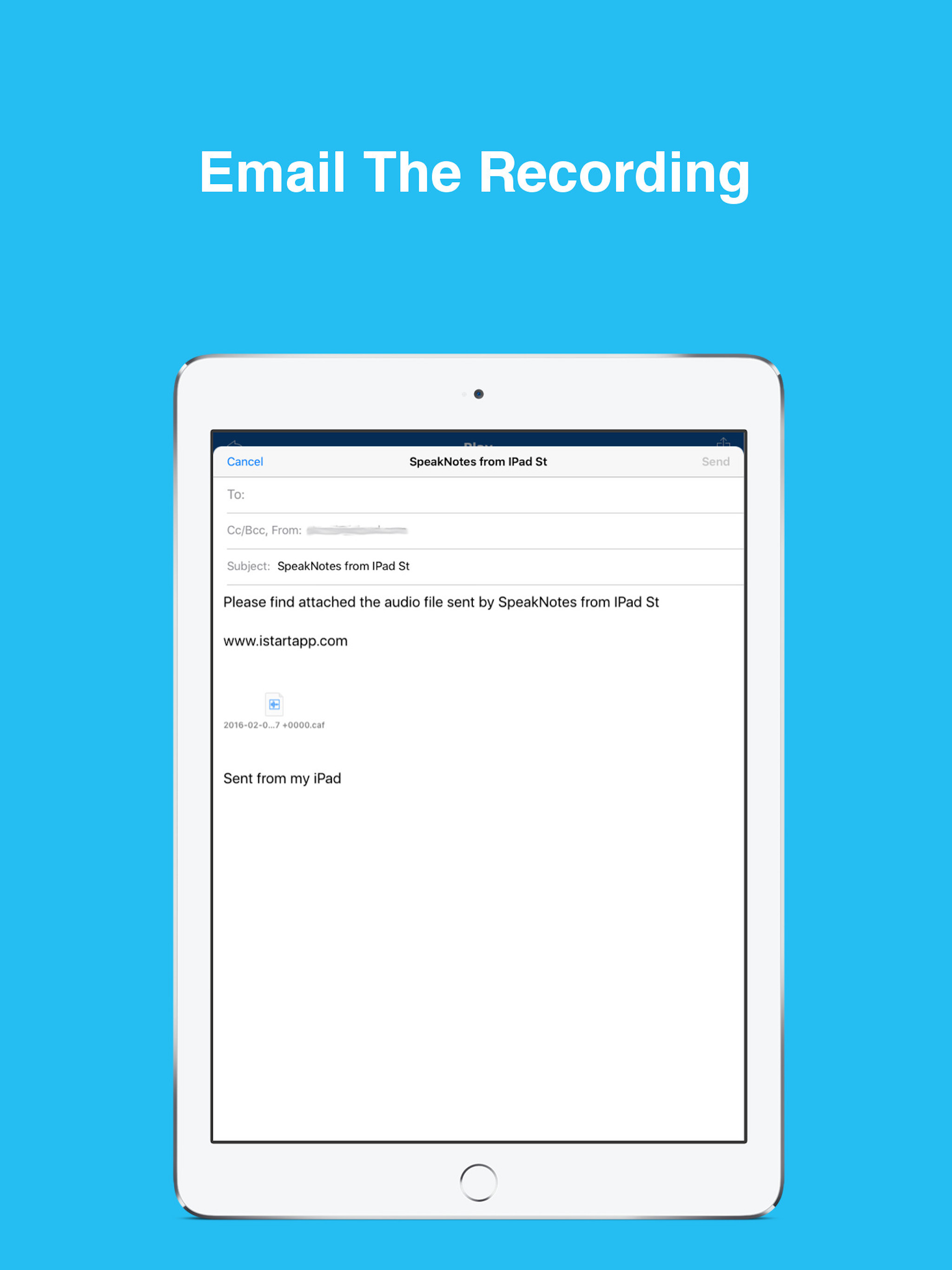 Audio recordings can also be sent by email and exported to other iPhone and iPad apps including FileXChange, Dropbox and other.