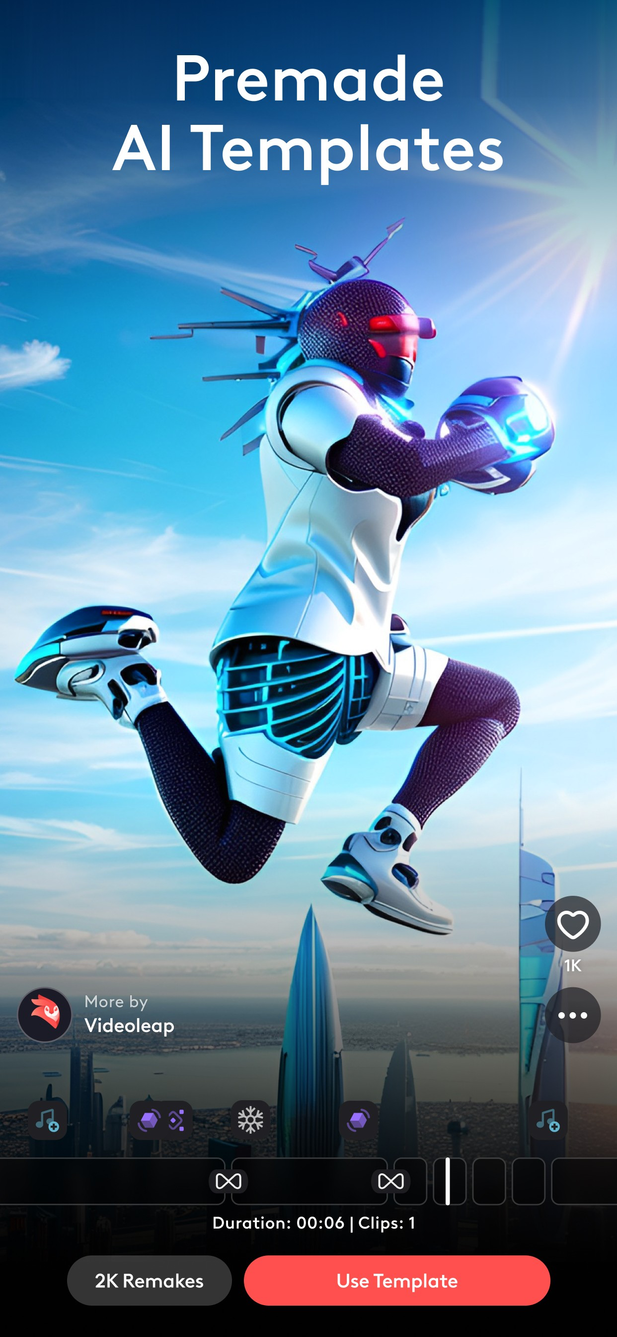 • Premade AI Templates-Remake 100s of mind-blowing AI templates using your own assets.